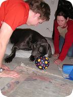 Am Samstag, den 3.Januar, fahren wir von Linz aus erst mal zu Brutus. Der Spaziergang mit Dogge Zoe genießt nicht nur Brutus. Endlich hat er Zoe für sich allein. Immer wieder jagen die beiden über die Wiesen, sie scheinen nicht müde zu werden. Dann wollen wir aber noch Atlantis und Elfi »Auf Wiedersehen« sagen, ehe wir morgen den Heimweg nach Leipzig antreten müssen. Unser Ford Mondeo Turnier wird gleich einem Belastungstest unterzogen. Fünf erwachsene Menschen und zwei Doggen passen gut hinein. Brutus freut sich, kann er doch ganz nahe bei Zoe sein. Die Stunde bei Elfi vergeht wie im Flug und nun heißt es Abschied nehmen. Zuvor wird Brutus natürlich noch mal ordentlich gekrault und er verabschiedet sich nach Doggenart. Wir versprechen ihm, dass wir bald wiederkommen.